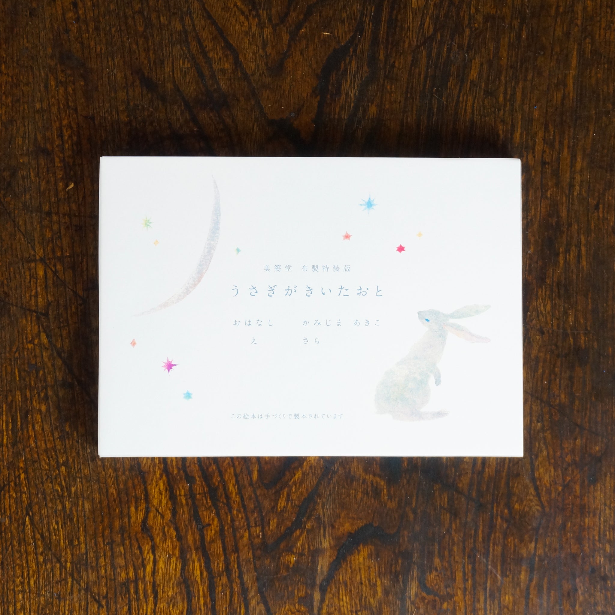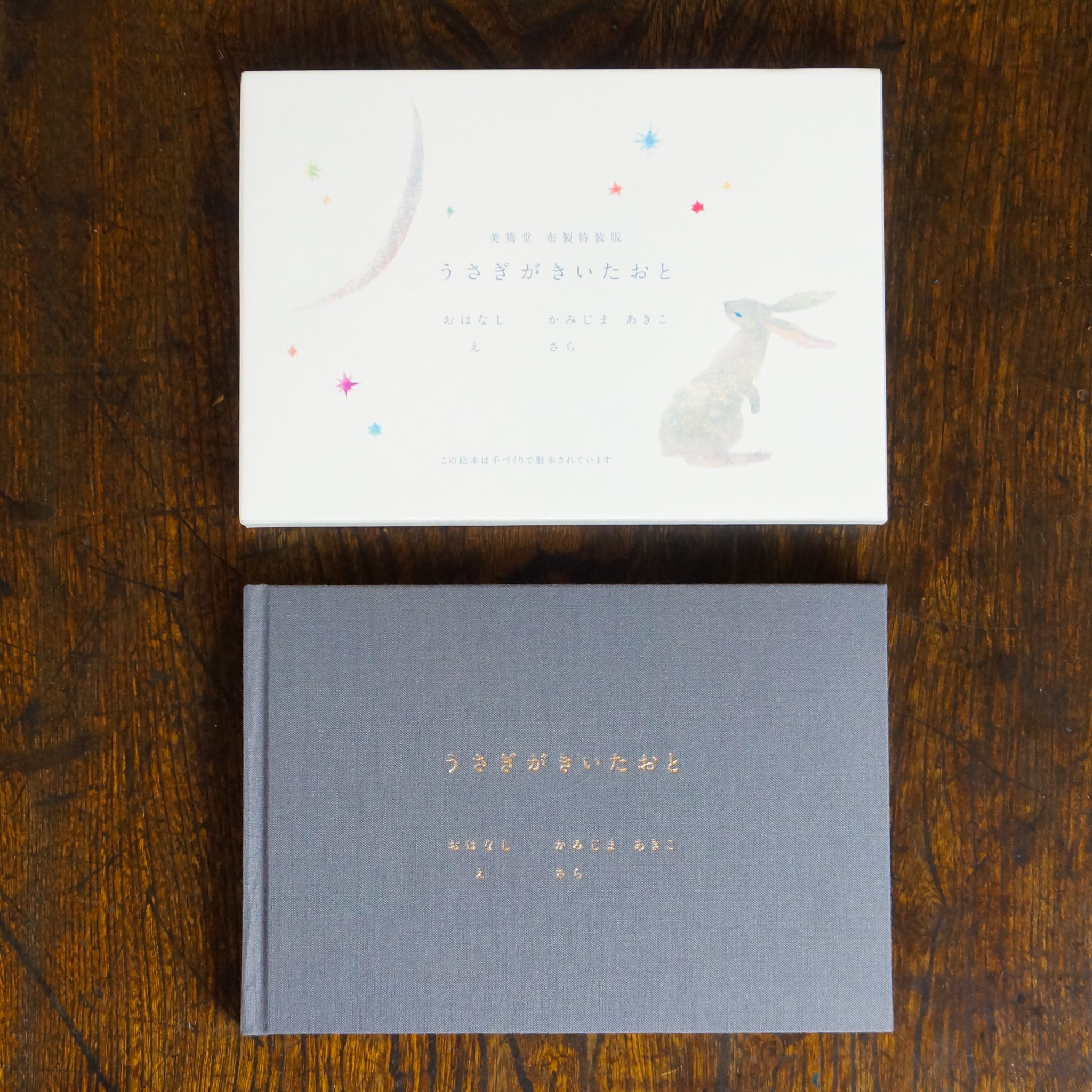※2018年にBook&Designから刊行した絵本『うさぎがきいたおと』(品切れ)の表紙を布製・箔押し・ケース入り上製本に仕立てた特装版になります。本文はBook&Design版と同じです。