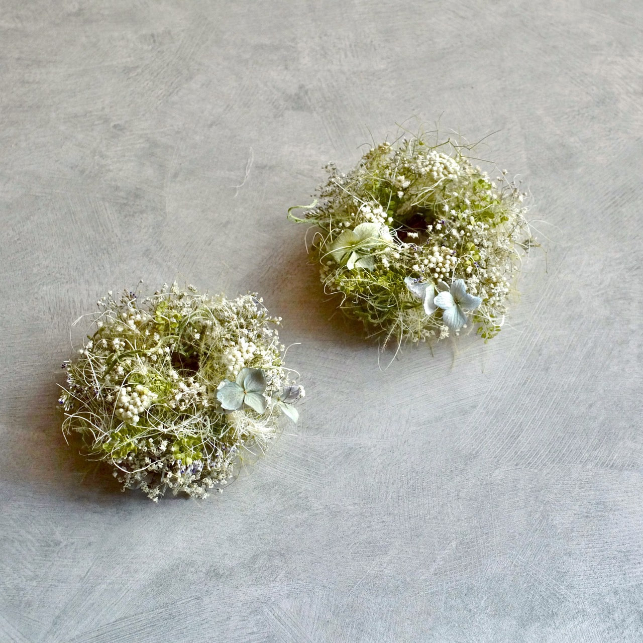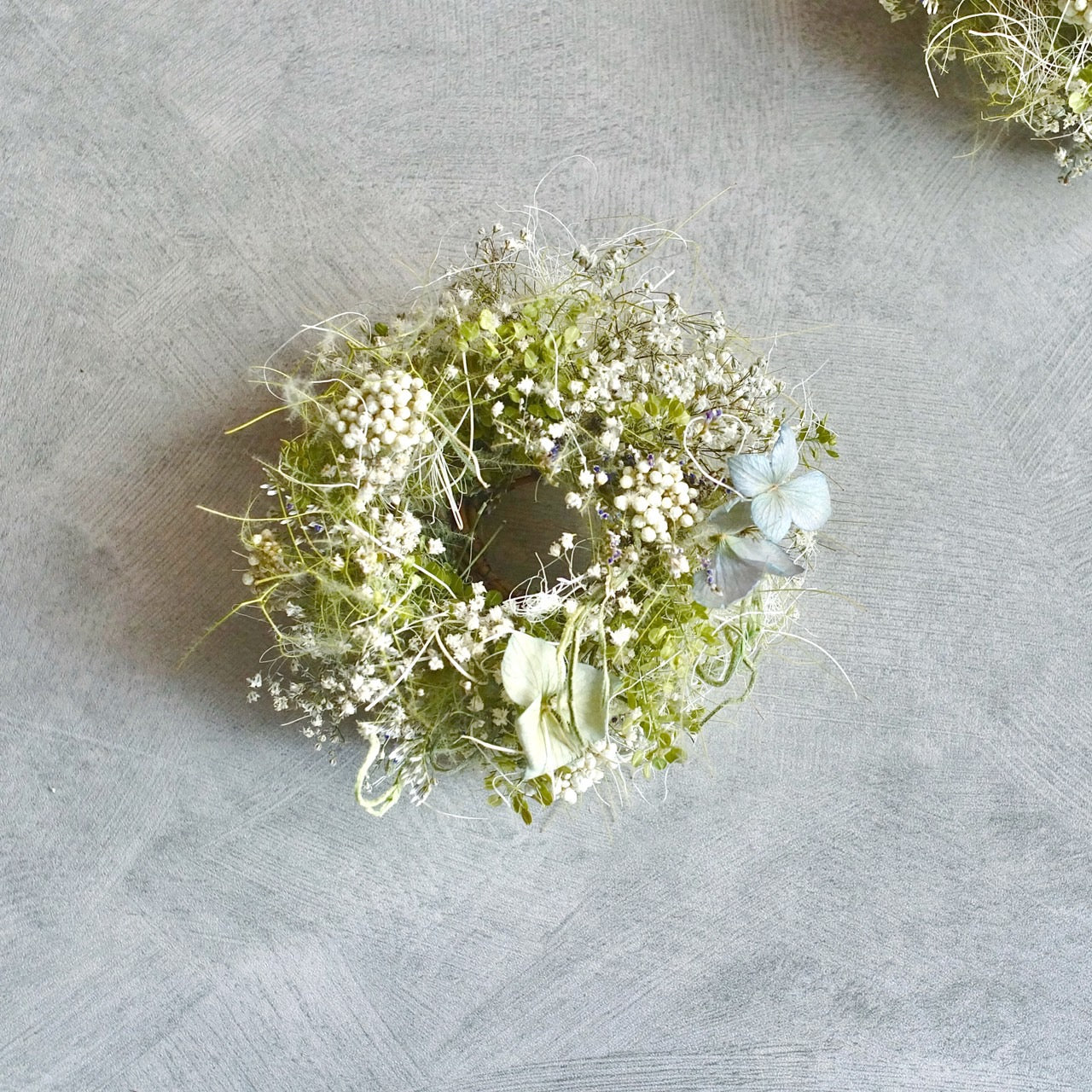 直径約11cmの小さなリースは、壁やドアに掛けて飾るのはもちろん、テーブルや棚の上などにちょこんと飾るのもおすすめ。