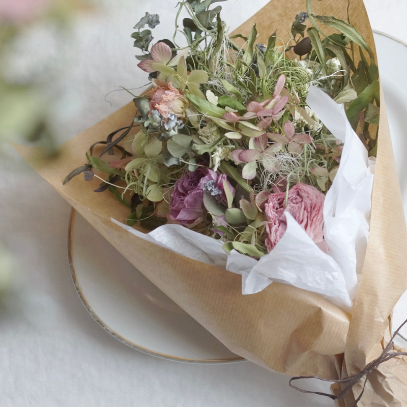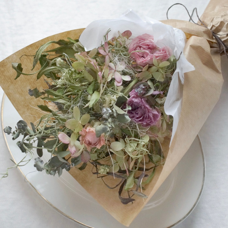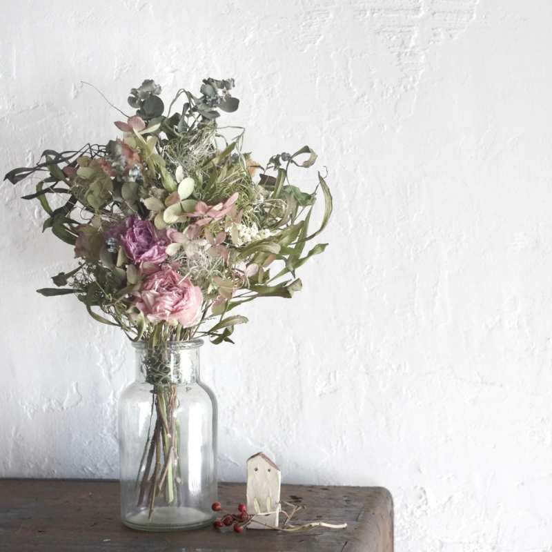 ・丁寧に梱包して発送させていただきますが、ドライフラワーの特性上、発送時、多少の欠落ちがある場合がございます。